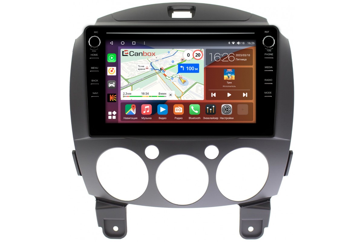 Штатная магнитола Mazda 2 (DE), Demio 3 (DE) (2007-2014) Canbox H-Line 7894-9031 на Android 10 (4G-SIM, 6/128, DSP, IPS) С крутилками